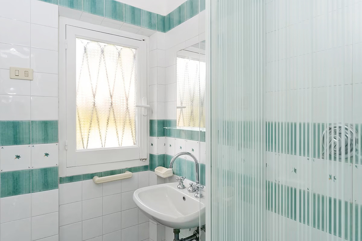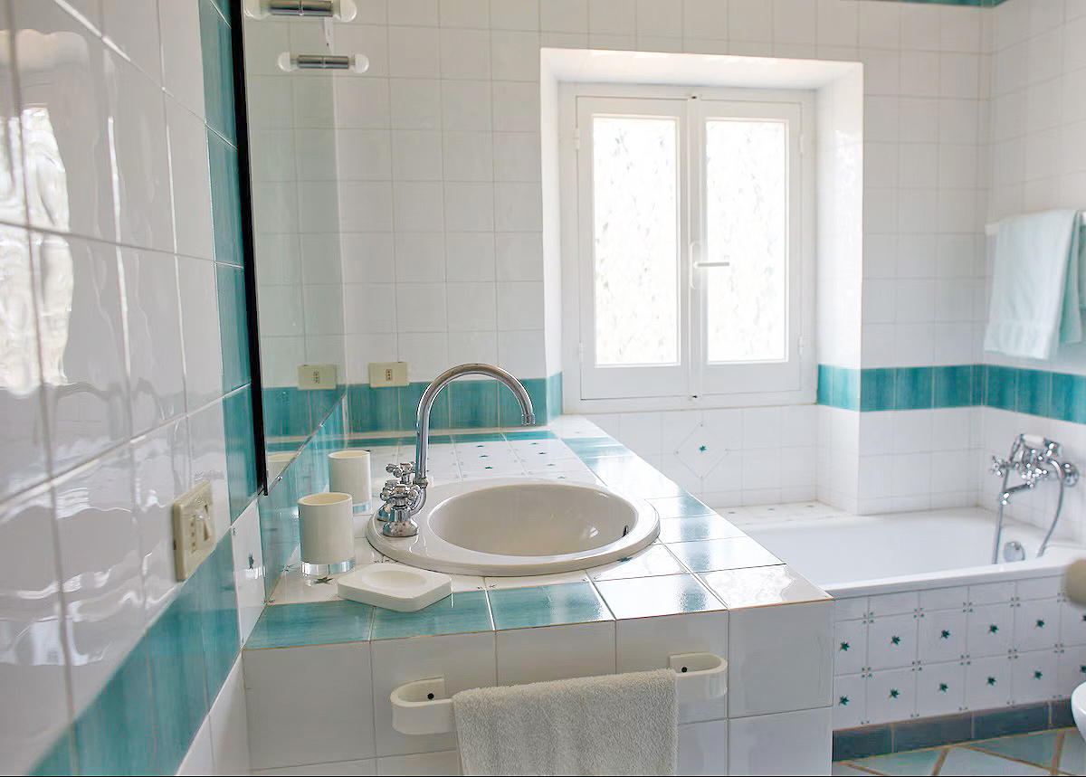 Auf der gleichen Etage befinden sich eine komplett haushaltsgerecht ausgestattete Küche mit Kühl- / Gefrierschrank – Elektroherd – Mikrowelle - Waschmaschine und Geschirrspüler. Im angrenzenden Flügel der Villa befinden sich 1 Badezimmer mit Dusche/ WC/ Bidet und im gegenüberliegenden Flügel des Hauses, ein Eheschlafzimmer + ein Bad mit Wanne/ Dusche/ WC/ Bidet.