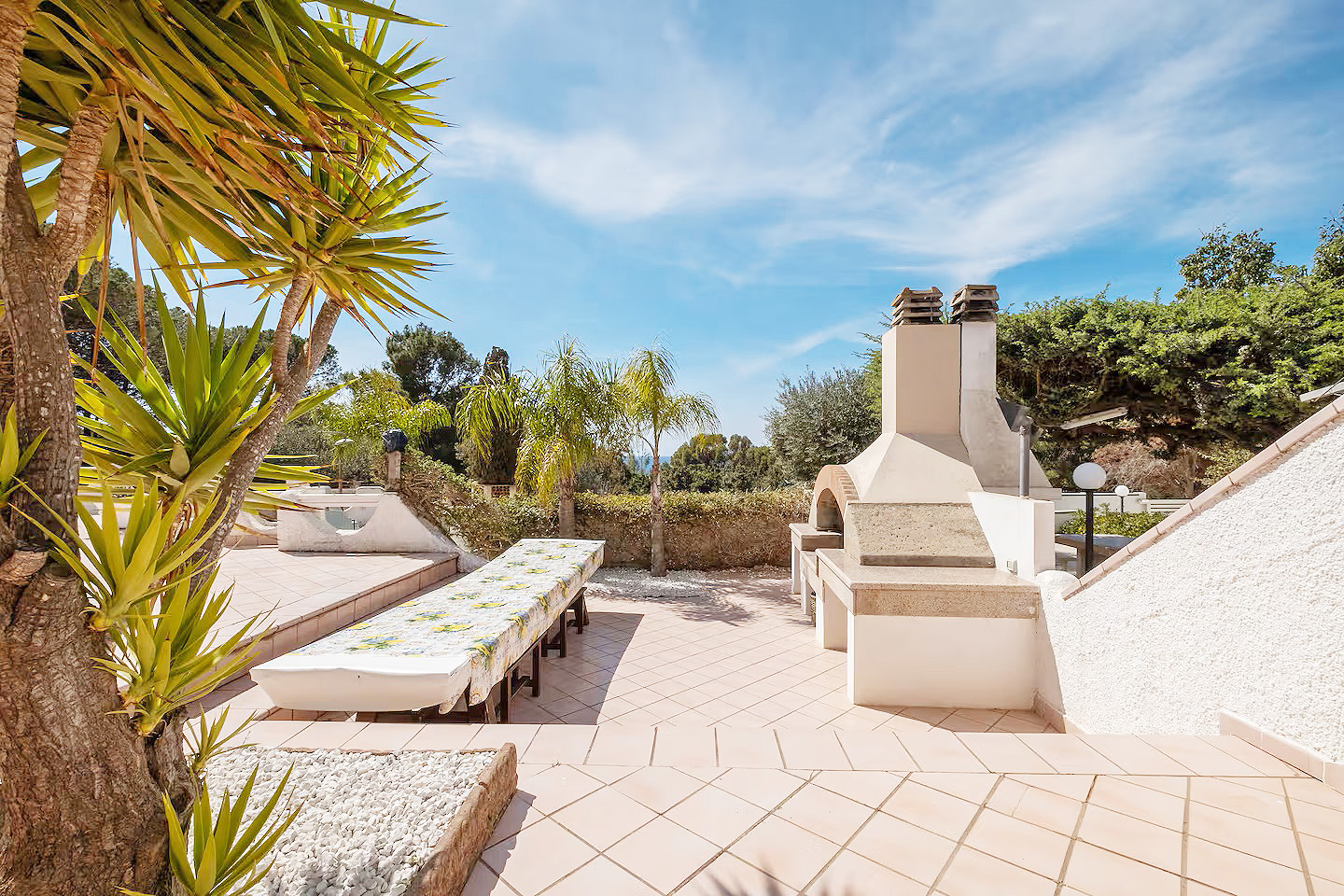 Die Villa verfügt über einen schönen, großzügigen Außenbereich, in dem Sie im Freien speisen oder sich auf den bereitgestellten Sonnenliegen entspannen können.