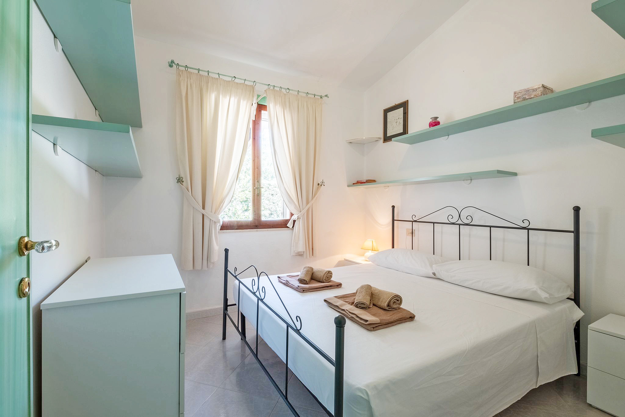 Etwa 300 Meter entfernt, in der Bucht von Porto-Pino mit ihren zwei weitläufigen weißen Stränden, finden Sie Sportanlagen, Geschäfte, Bars und Restaurants (teils nur saisonbedingt geöffnet). Die Strände, besonders die von Porto-Pino, sind sehr kinderfreundlich, und das seichte Wasser ist ideal zum Schwimmen für kleine Kinder. Wassersport und Windsurfen sind in dieser wunderschönen Bucht perfekt.