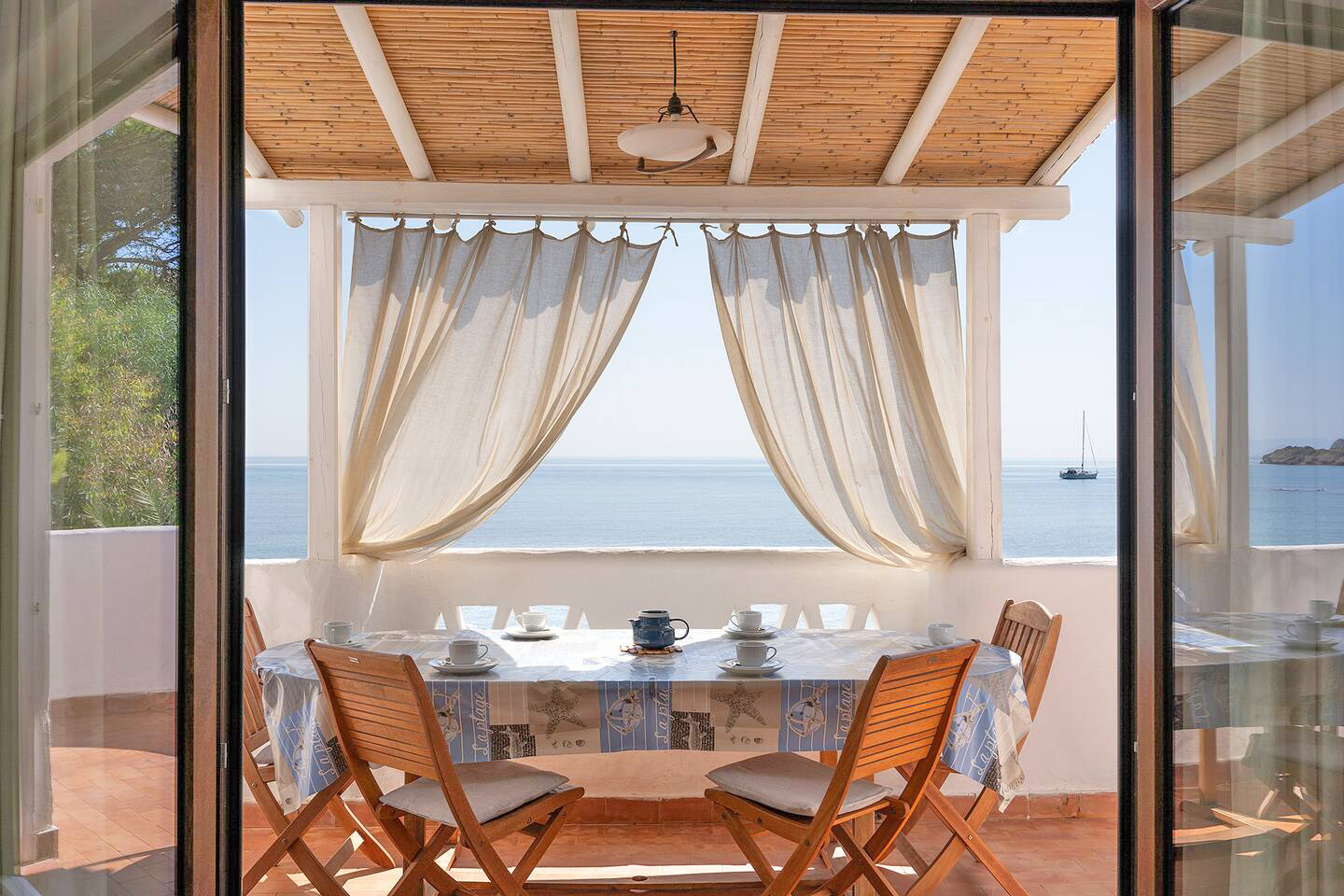 1. Etage: 1 großer Wohnraum mit Essecke, Kamin mit Relaxzone und Zugang zur Terrasse mit einem herrlichen Meerblick - 1 separate Küche ausgestattet mit Geschirrspülmaschine - 1 Schlafzimmer mit Ehebetten - 1 Schlafzimmer mit zwei Einzelbetten - 2 Badezimmer mit Wanne/Bidet/WC.
