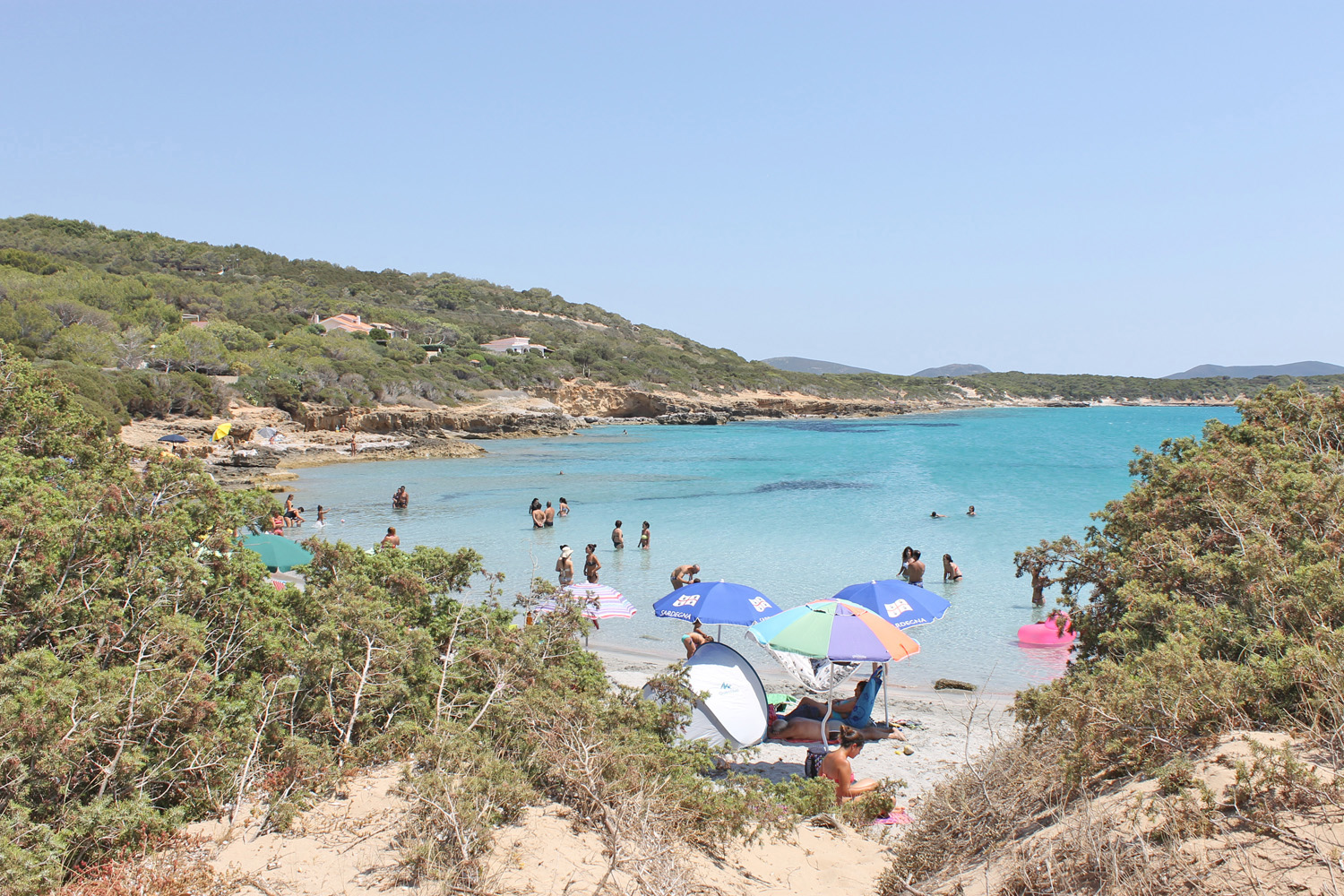 Etwa 300 Meter entfernt, in der Bucht von Porto-Pino mit ihren zwei weitläufigen weißen Stränden, finden Sie Sportanlagen, Geschäfte, Bars und Restaurants (teils nur saisonbedingt geöffnet). Die Strände, besonders die von Porto-Pino, sind sehr kinderfreundlich, und das seichte Wasser ist ideal zum Schwimmen für kleine Kinder. Wassersport und Windsurfen sind in dieser wunderschönen Bucht perfekt.