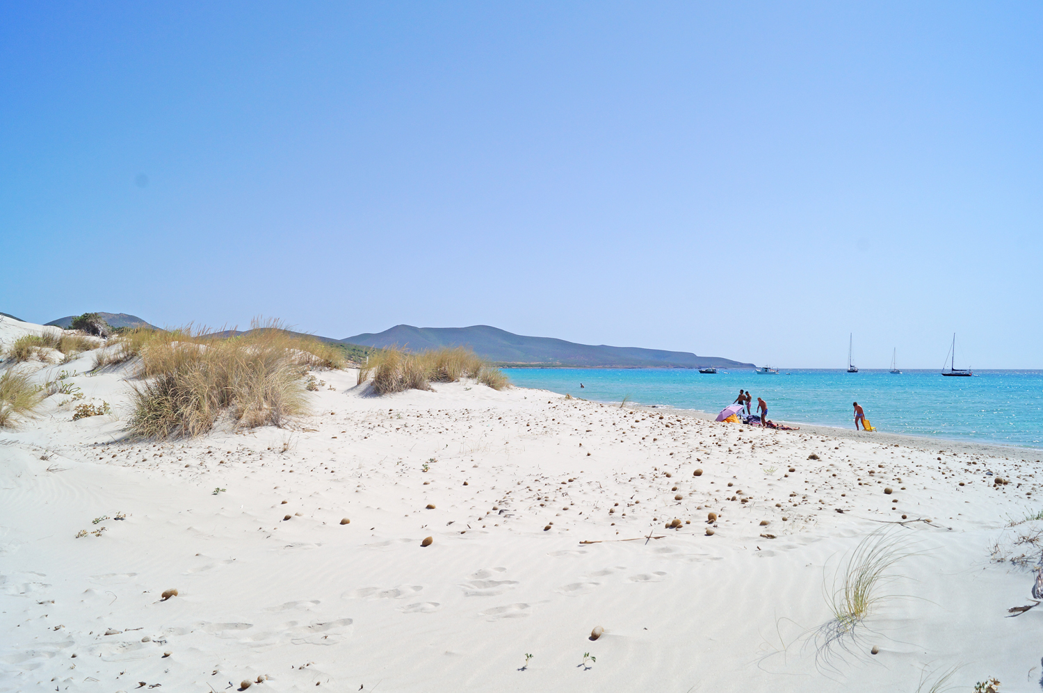 Die atemberaubenden und berühmten hohen weißen Sanddünen von Porto-Pino sind ebenfalls eine Attraktion.