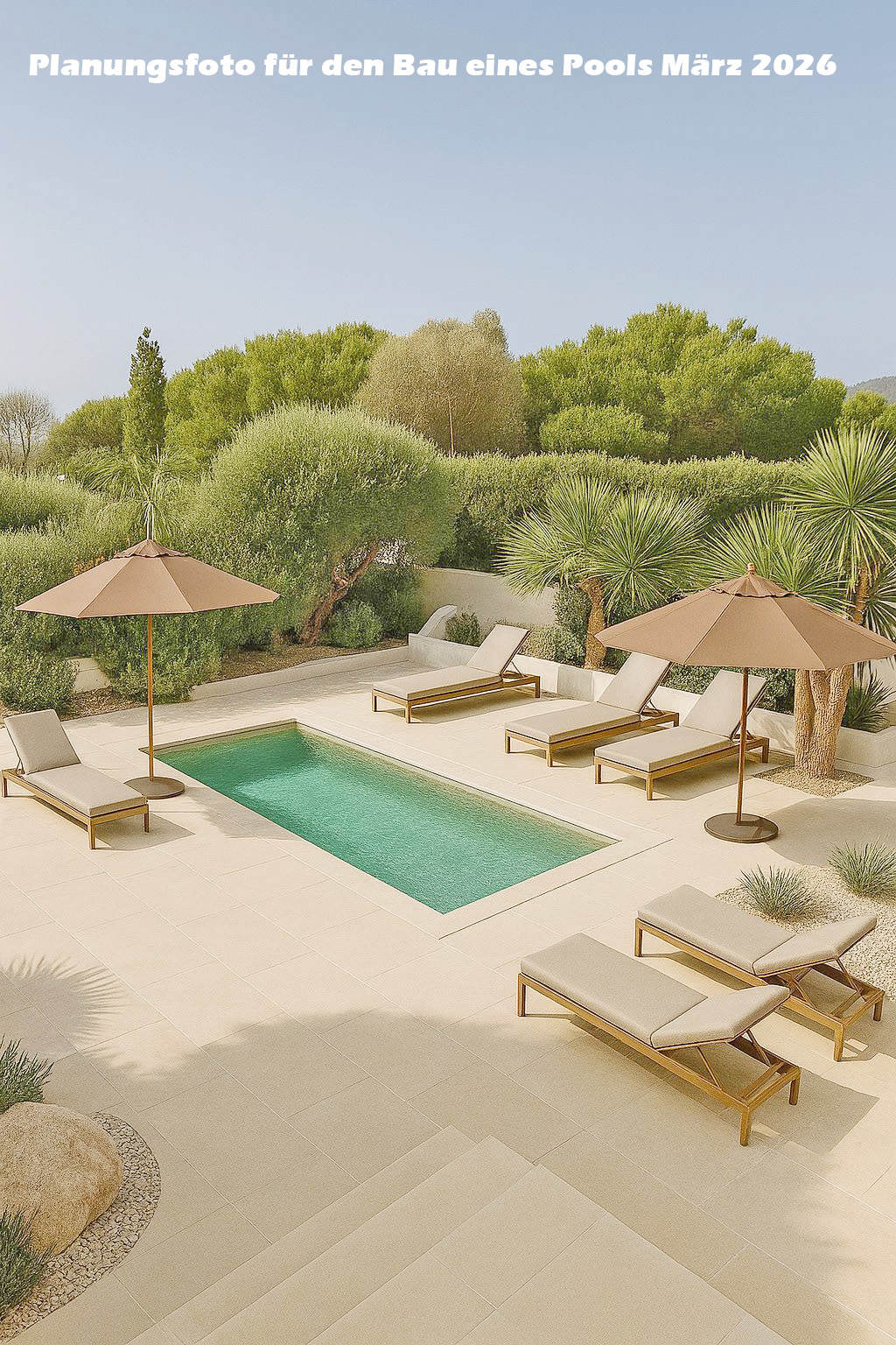 Ein herrlicher, großer Garten bietet einen fantastischen Grillbereich und einen privaten Swimmingpool, der sich derzeit noch im Bau befindet und dessen Fertigstellung für März 2026 geplant ist.
